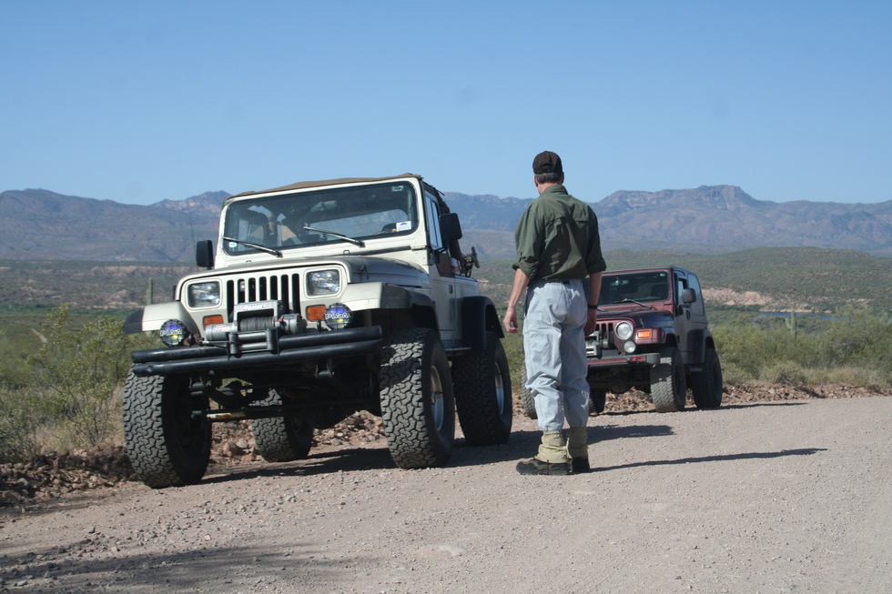 Airing down Hank and Mike's Jeeps at the start of FR203 (Cherry Creek Road)