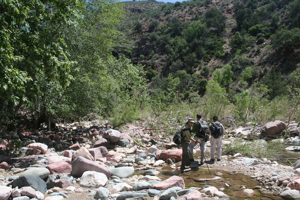 Ken, Hank, and Mike crossing Cherry Creek
