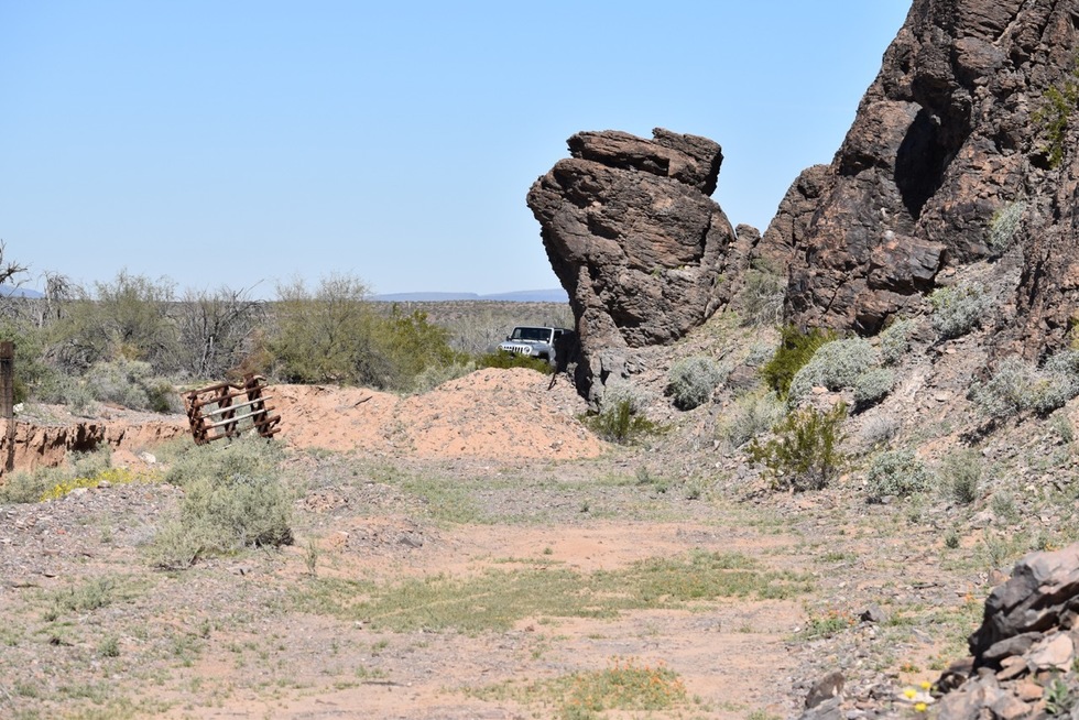 This was the end of the road on the northeast side of the Gila River. "Mans got to know his limits" I was not going to attempt anymore obstacles. On the way out I made about 8 attempts to get out of a wash. Had to do some digging, move out boulders, and strategically place boulders to get out of a steep walled wash.