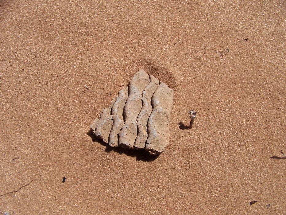 This oddly corrugated sherd corresponds to another type of pottery I've only seen on the Paria.