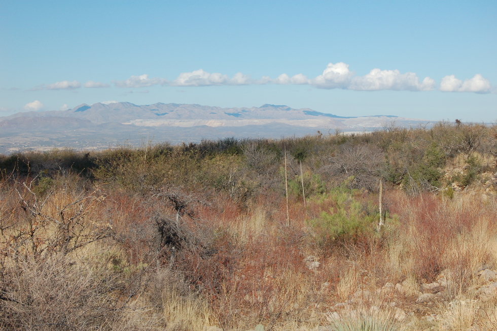 View Northwest toward green valley and the mines. Sierrita Mountains in background