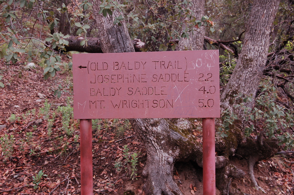 Trail Sign at Junction of Baldy Saddle and Vault Mine Trail.