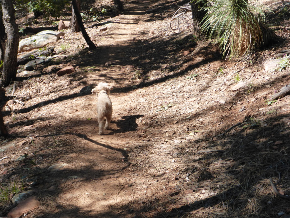 One of three dogs that went on this backpacking trip. This Toy Poodle named PokaDot was the best hiking dog I've seen! Totally fooled me.