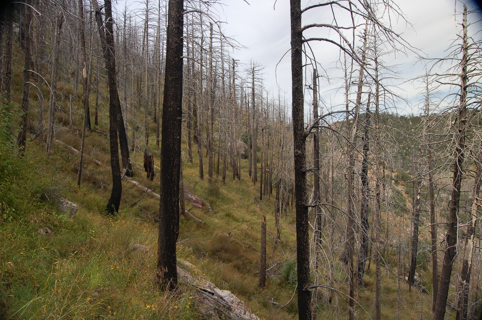 Along Armour Spring Trail (part of Four Springs Trail) near the Florida Crest Trail junction. Looking west toward McCleary Peak and Saddle.