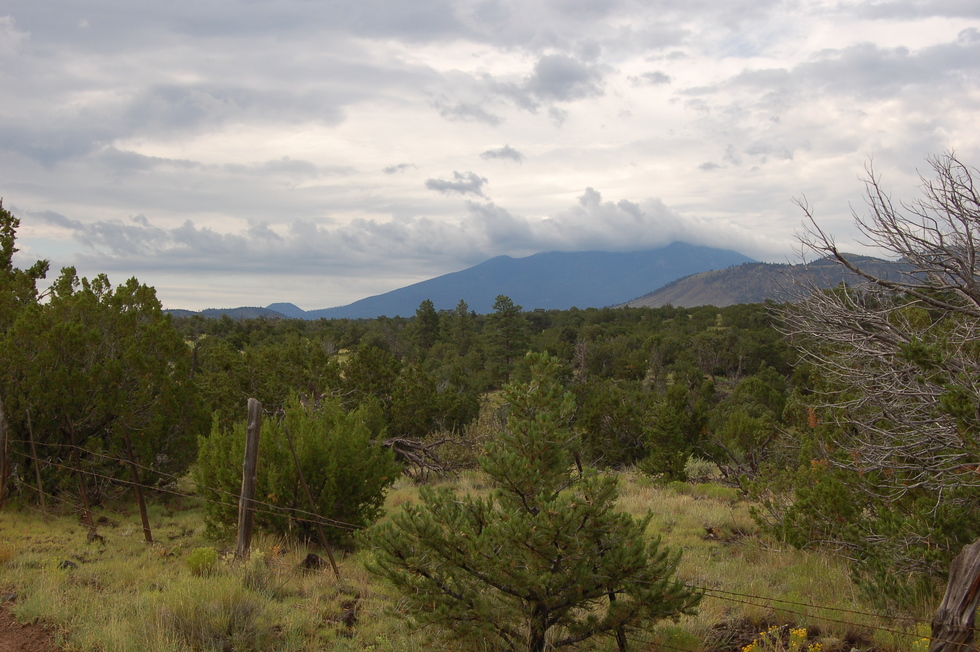Trail near Bonita Tank and turn around point. San Francisco Peaks in background.