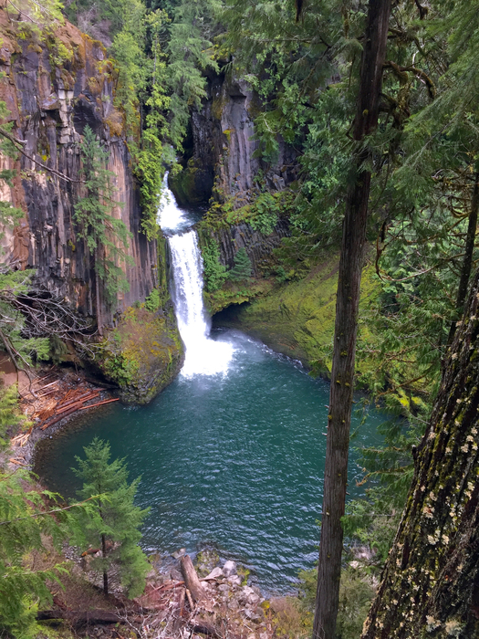 The falls drop in 2 stages. The final drop shown here is 80 feet. A 40 foot drop above it is partially visible.