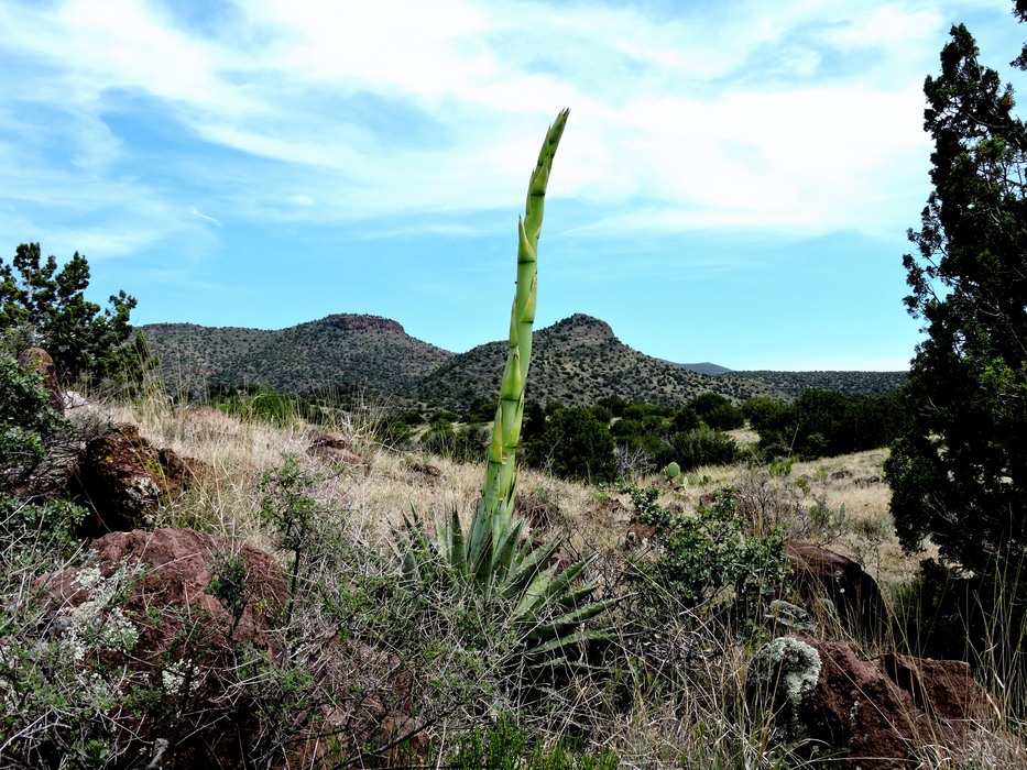 Thirteen Mile Butte and a blooming agave, one of the most important plants to the Natives.