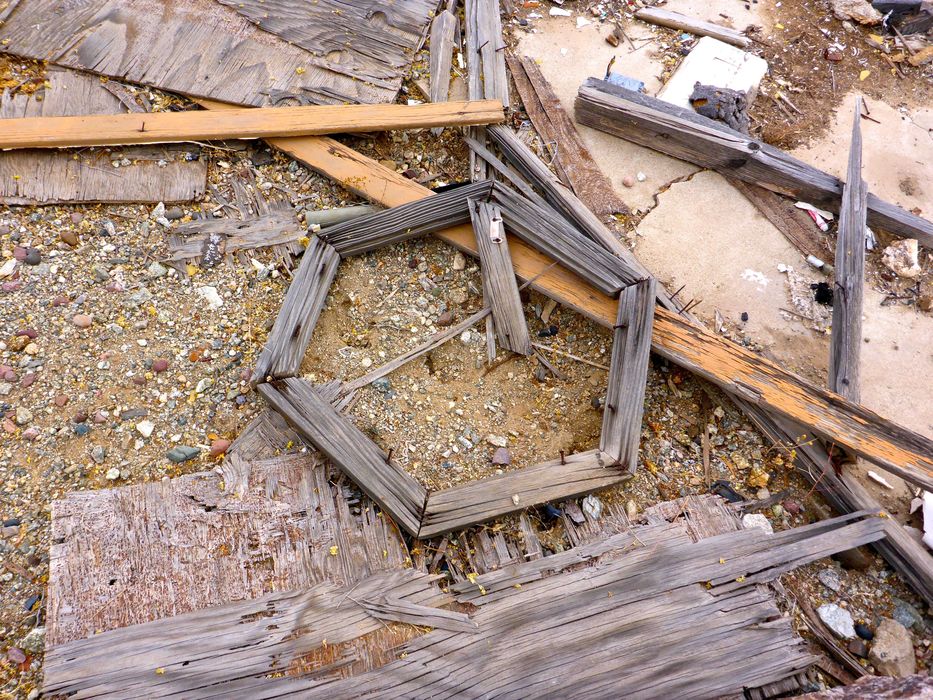 A hexagonal frame amongst the detritus of R.A. Steele Ranch.
