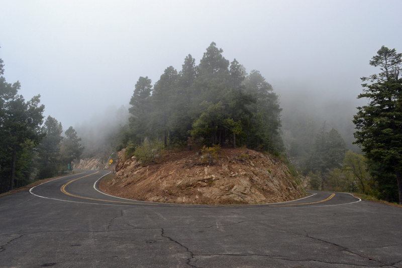 Rounding Ladybug Saddle on the drive up through the clouds.