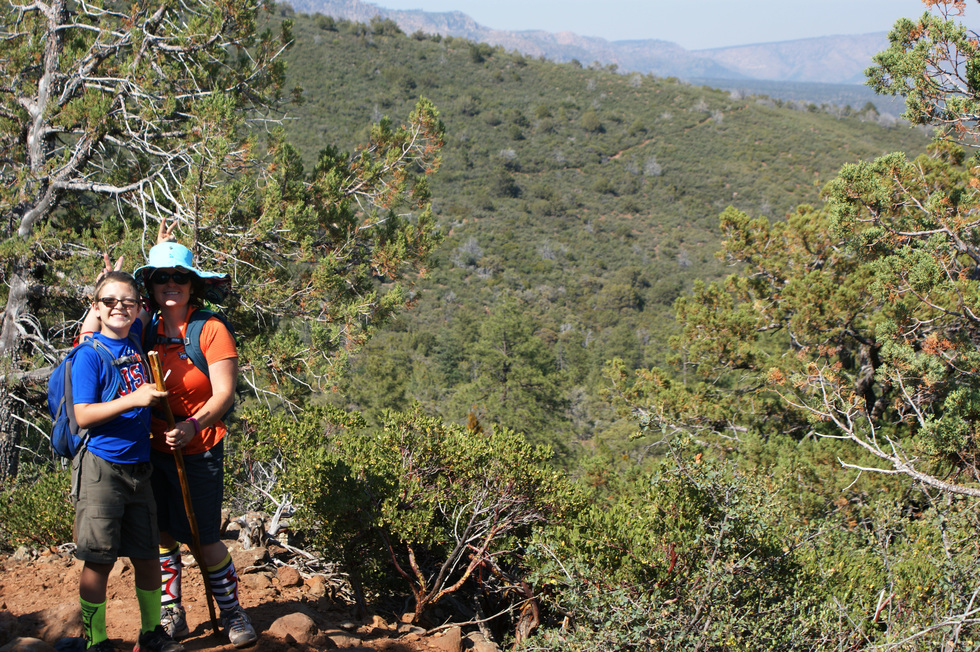 Bryce and Karolien posing...The distant Mogollon Rim with the AZT Highline below.
