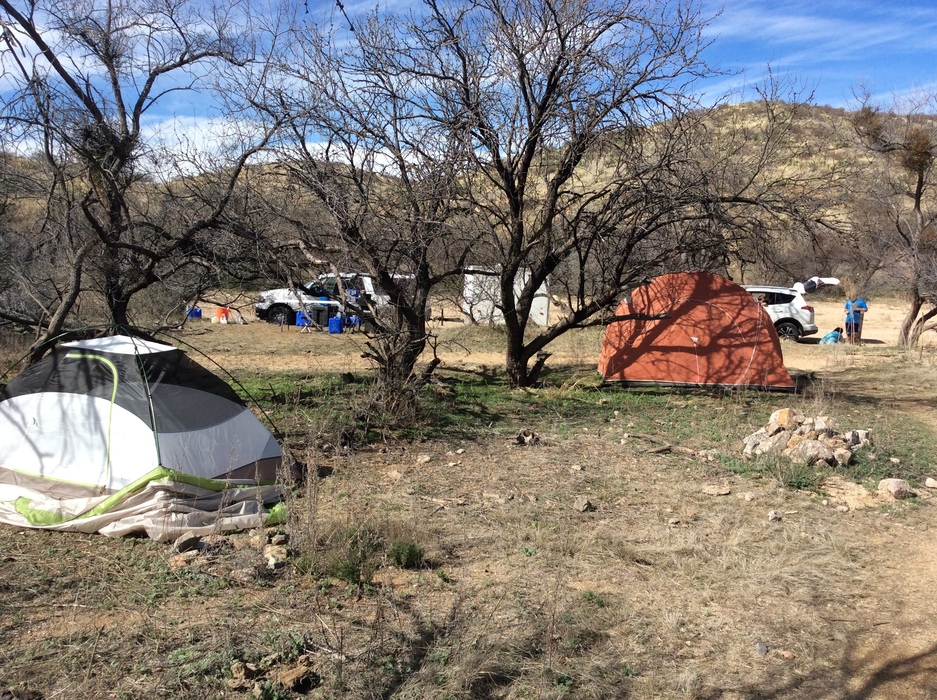 Looking downtown into Tucson Wash our ending and starting destination! The vehicles were part of the Conservation Crew camp. They were working north of Tucson Wash.