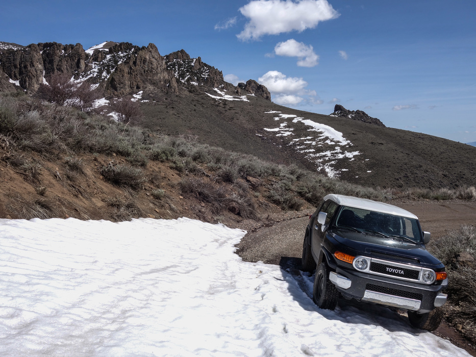 My plan was to drive up the Hinkey Summit Road, NF-084, as far as it was open and then look for a place to camp for two nights. This snow drift effectively closed it about 3 miles short of the summit. I back tracked about a mile and drove up a 4x4 track recommended by a couple of locals I met in the Paradise Valley Saloon but only after they saw what I was driving. It led to the top of a ridge where I set up camp (parked).