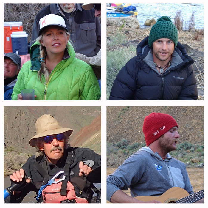Our river guides from Momentum River Expeditions. Taylor, top left, mostly took the lead especially when it came to keeping 8 unruly ex-football players in line. James, top right, is from Tasmania. He loaded up a raft with gear early in the morning and scooted down river to secure the next campsite. Rick, bottom left, from my generation has many years of guiding experience in the western US. Derrick bottom right guides during the winter in southern Chile.