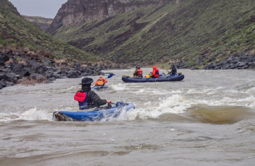 In addition to rafts, we had two inflatable kayaks which four of our more adventurous members tried out. To their credit, none of them flipped over in the rapids. This was on day 2 which was the coldest of the trip with rain off and on.