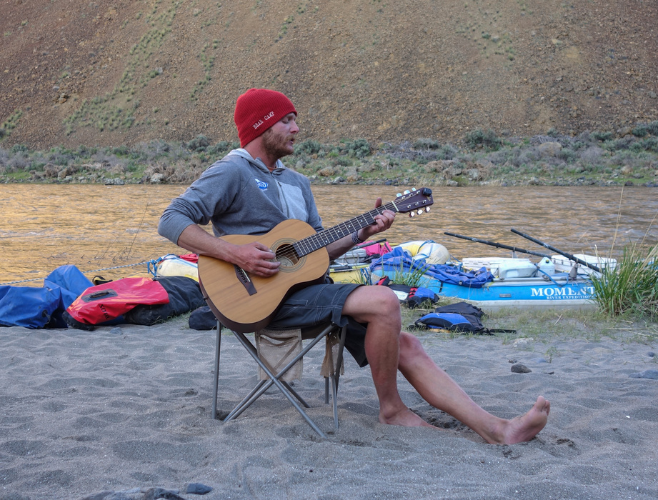 Derrick, one of our four river guides entertaining us with some of his songs on our last evening. He was definitely much better than the five members of our group who did a karaoke sing along on a previous night to a recording of Lee Marvin singing "Wandering Star" from the 1969 movie "Paint Your Wagon".