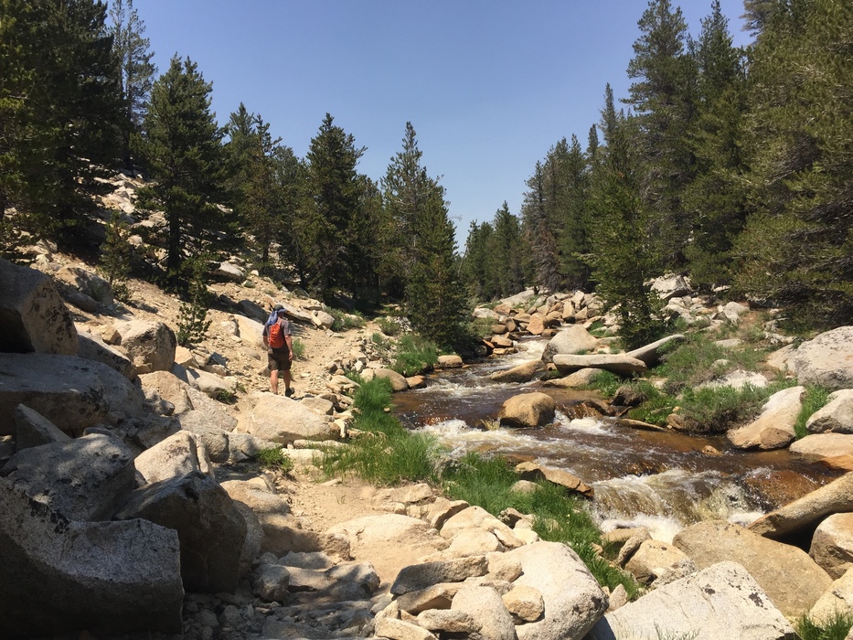 Back to familiar trail along Golden Trout Creek. Big Whitney Meadow, and our campsite, is roughly a mile ahead