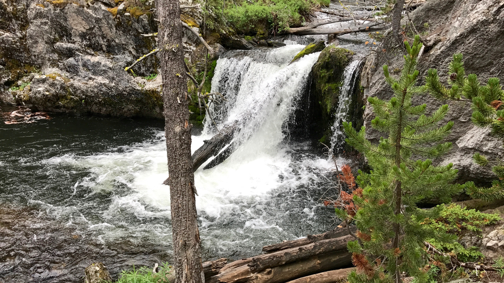 Beautiful little waterfall and deep swimming hole along the Little Firehole under 100 yards from camp. It provided the sound of a nice flow of water all night while sleeping.