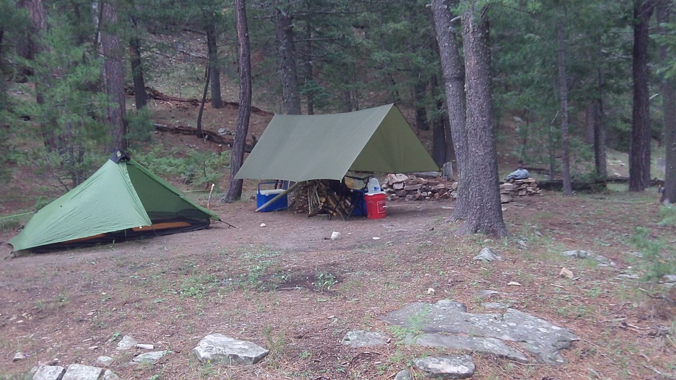 Second time I've used my homemade sil-nylon tarp. Thumbs up! Nice to have a rain free work area on the side.