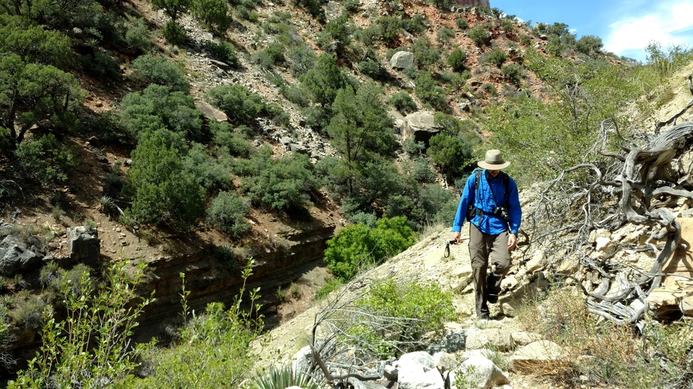 Jamie soaking up the sun as we round the last turns in the Muave and BA shale