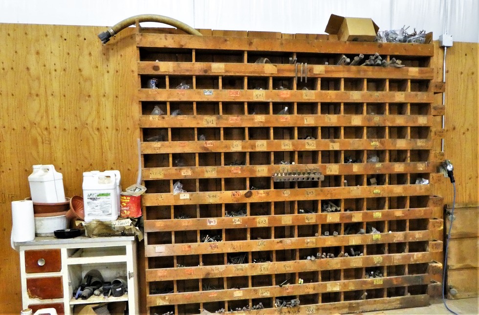 my Granpa Romain's old screws and nails bins are still a part of the working ranch.