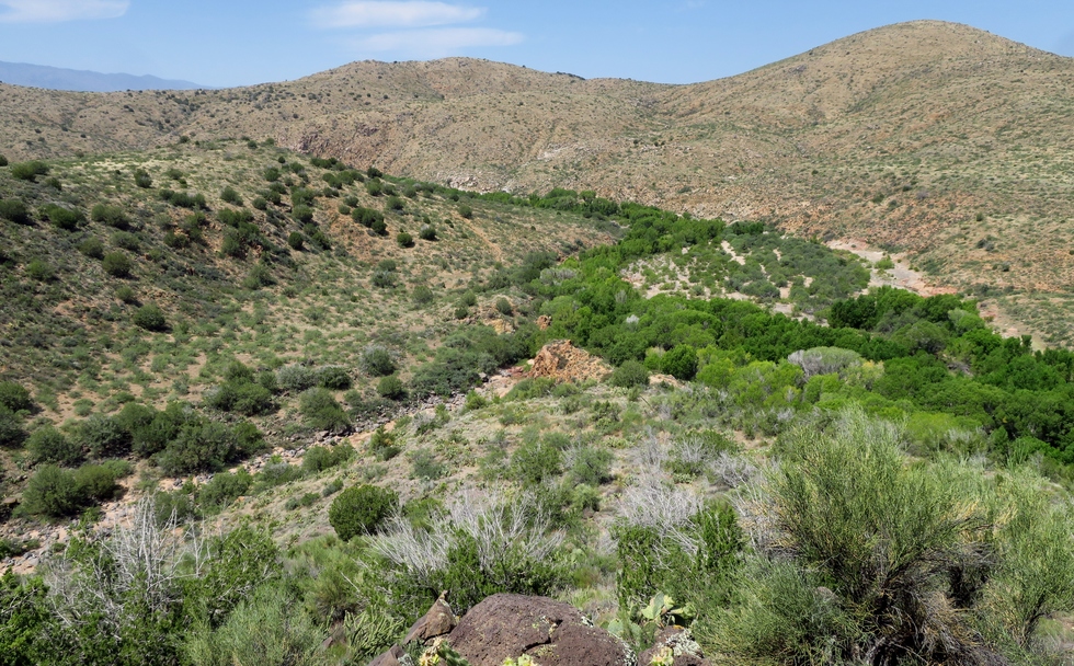 Looking back at where Bishop Creek (left) flows into the Agua Fria River. Nothing flowing today.