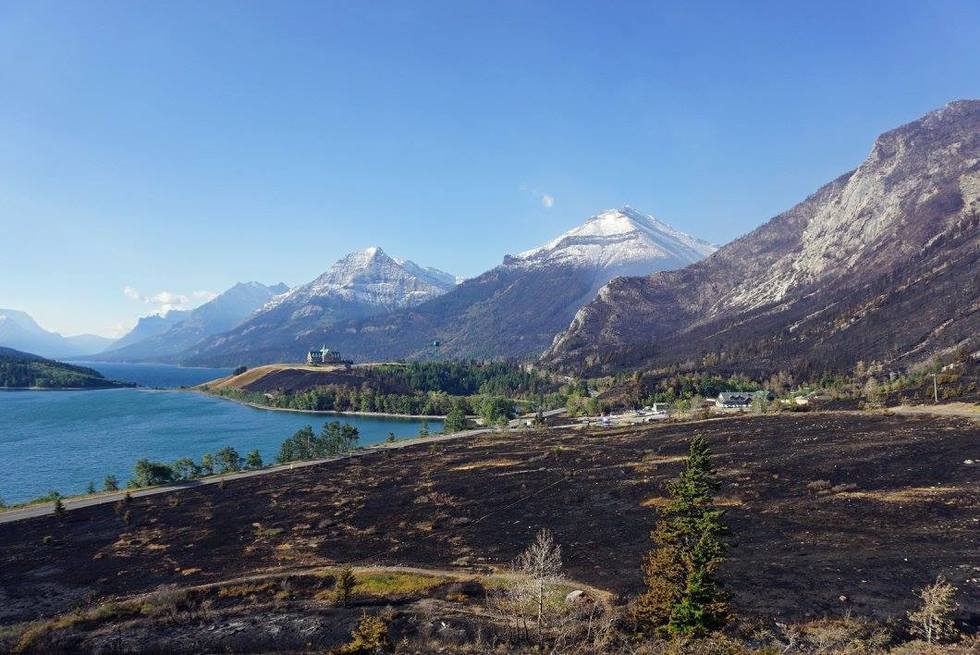 from the September Kenow Fire that burned almost 100,000 acres in just a few days with the bulk of that in two days. It burned from over by the Cameron Valley which is around the Bear's Hump on the right. Here is the story on how they saved the hotel: glacierparkinc.com/ ... e-b/