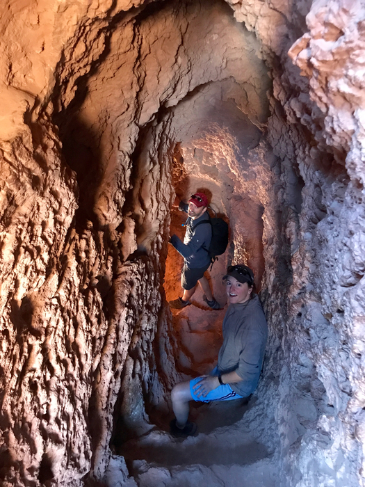 Heading down the first of the tunnels to get down to the base of Mooney Falls.