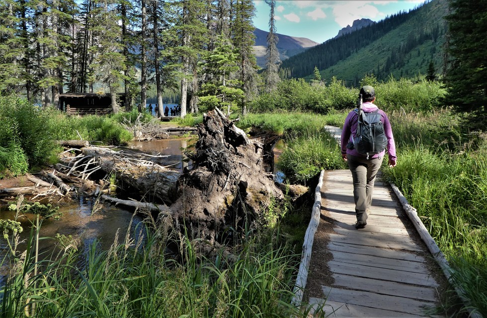 crossing over a footbridge toward Two Medicine Lake