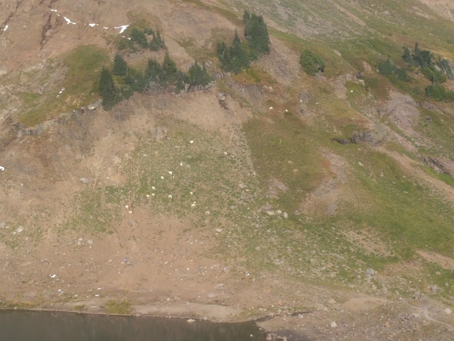 Goats on the ridge above the lake, I counted 20-22 at one time