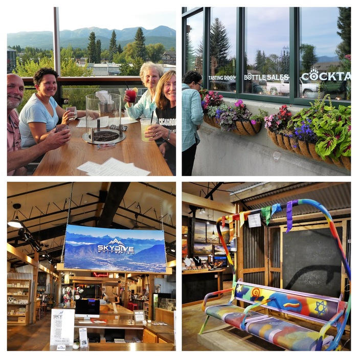 UL we are at the top of Casey's; it's also been totally renovated. From here you can see Big Mountain where we were earlier in the afternoon. The other pictures of where we walked around Whitefish. A lot of renovation has been going on but what I like is they have plaques as to what used to be there. I also like how they take the ski lift chairs and doll them up. We saw another one that had horses painted on it and was placed next to one of the stores.