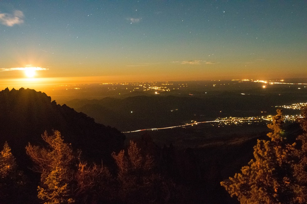 The lights of Doney Park, Twin Arrows Casino and the vehicles driving on I-40 and Highway 89 can all be seen.