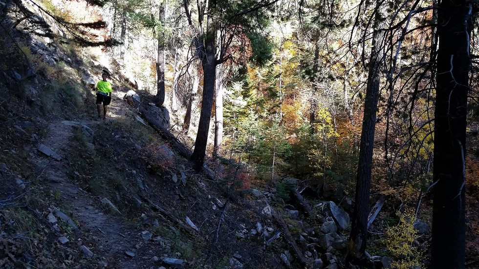 Joe, colorfully making his way down.