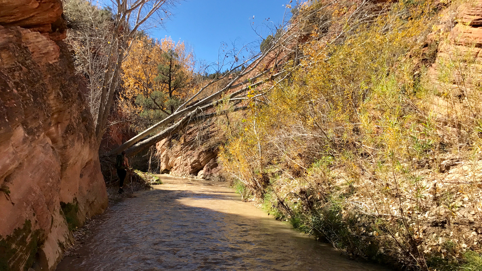 Eventually the East Fork narrows and we had to hop right in.
