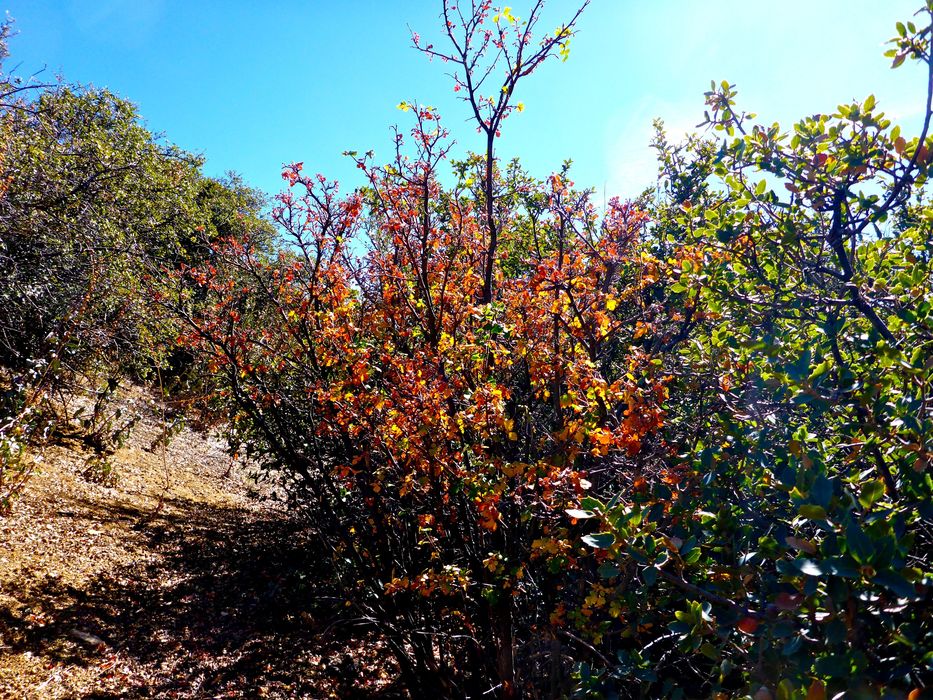 Some fall color in this bush. I like the way the sun shone through the leaves.