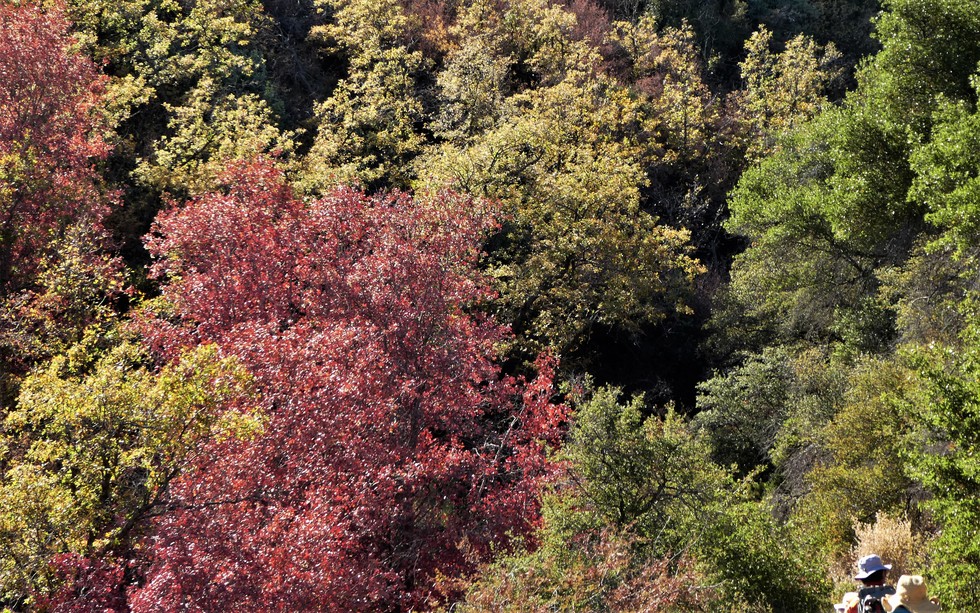 a little bit of maple hanging on as we round a corner on the Saddle Mountain Trail.