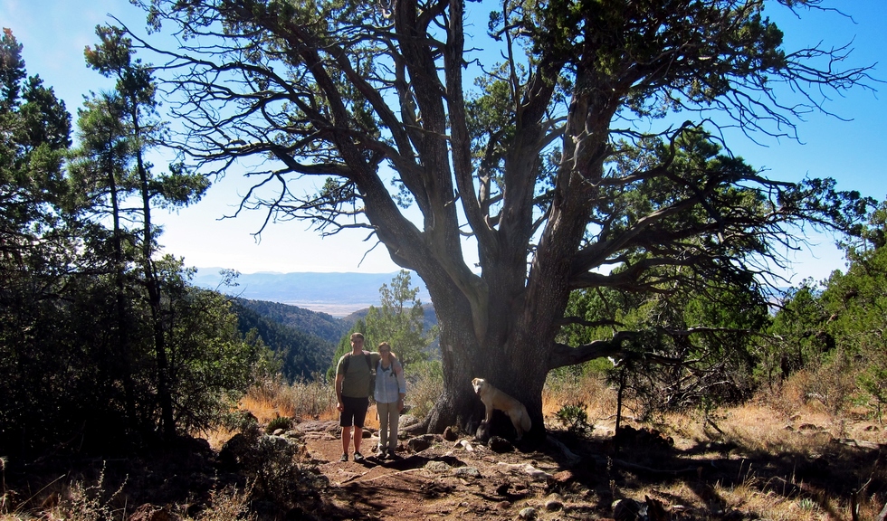 Posing at the big tree looking toward the Prescott Valley before heading down