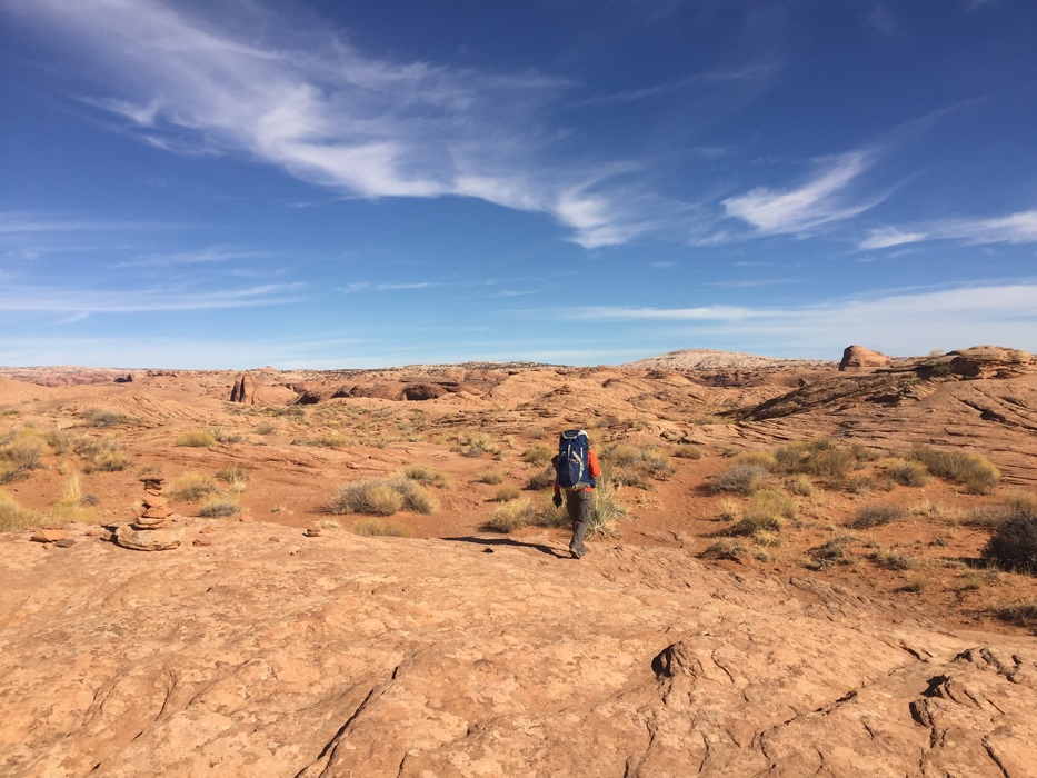 Karl leads the way as we head for the Crack Route. Notice the cairn on the left