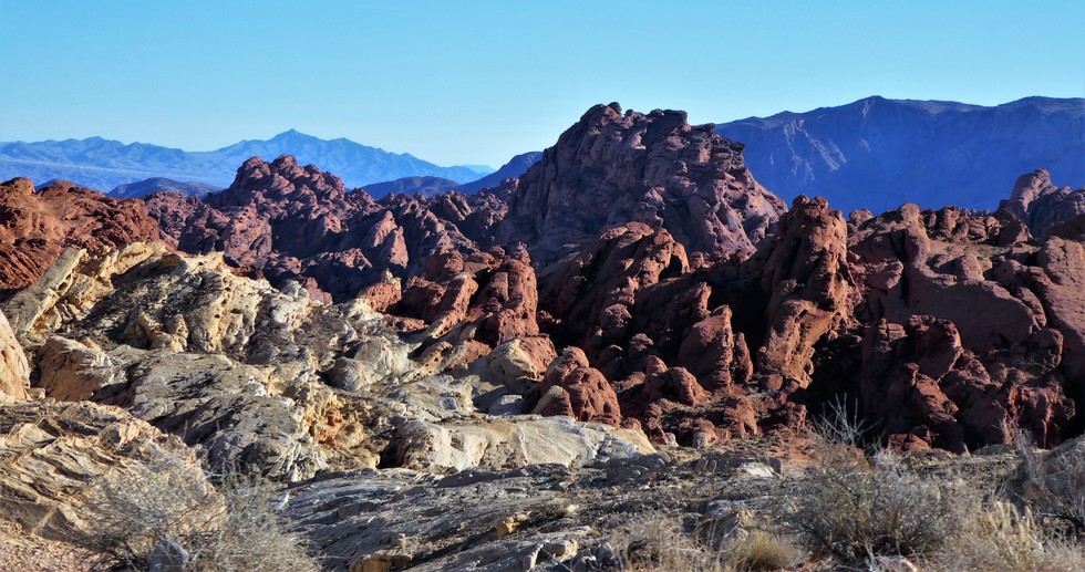 still on Fire Canyon Road looking to the south and Fire Canyon area. In this region, forces within the earth have been powerful enough to cause thousands of feet of surface rock to fold, break, and in some areas push several miles from their original location. Today, erosion has worn away the top of one great fold, exposing the sharply angles layer of rock, and creating numerous canyons.
