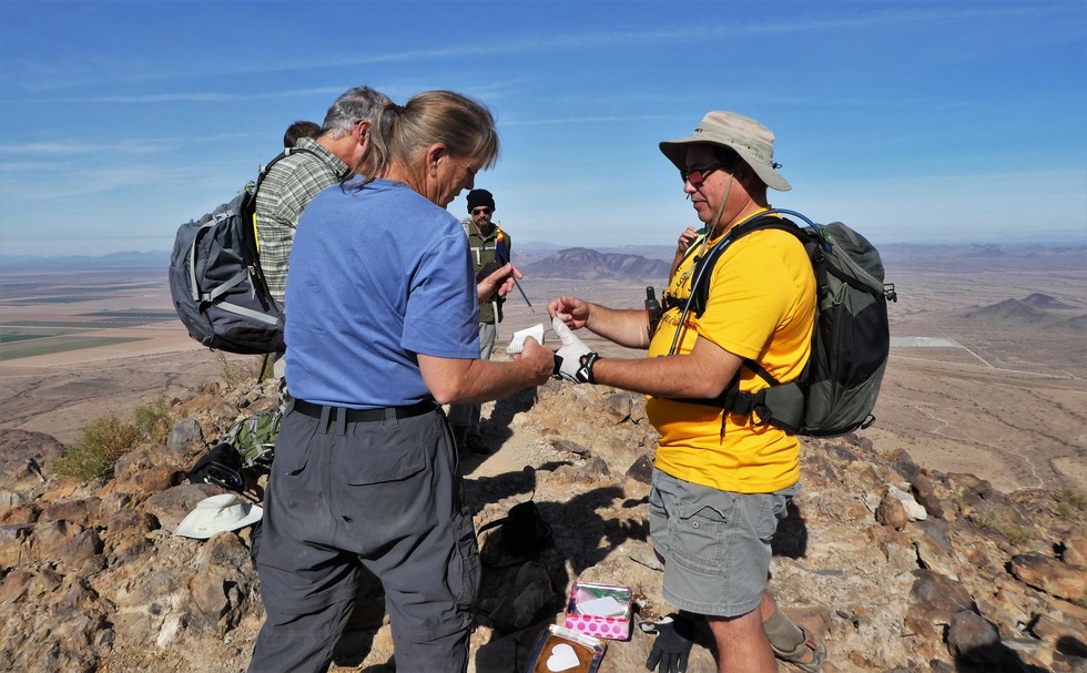 mountain, my name needs to be in the record book I mean summit log. By the way Terry, thanks for signing in for me and that awesome pic of me with the champagne; it's a big hit on FB [ photo ]