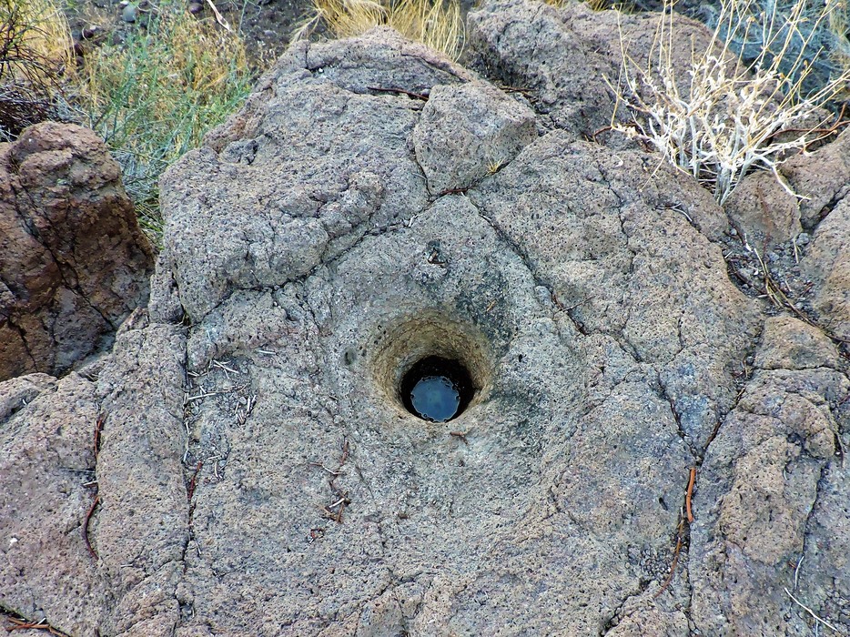 Bedrock mortar, or grinding hole. I didn't measure how deep it was but I did stick my hand down inside and was surprised. Maybe 8 inches or more.