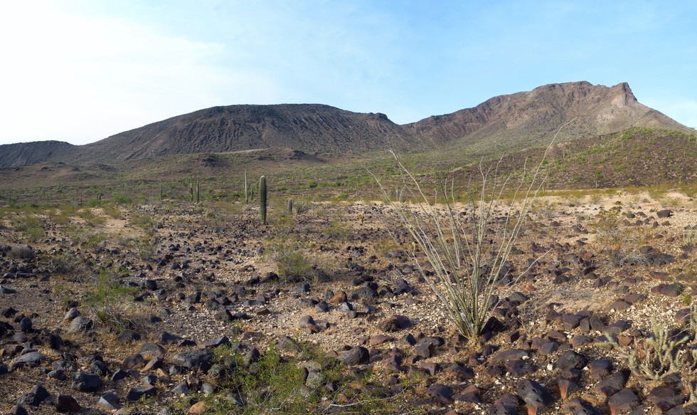 Woolsey Peak (right) and it's SE ridge. I plan to hit the ridge at the low spot on the left.