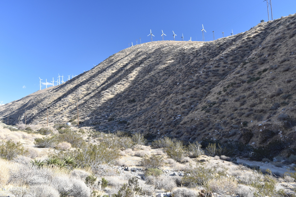 More windmills. these are old wind generators, probably from the 70's. You can see a few are missing the blades completely.