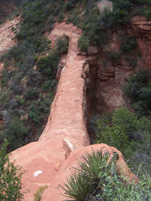 Short smooth drop from the end onto the arch, much longer drop if you miss! I played it safe.