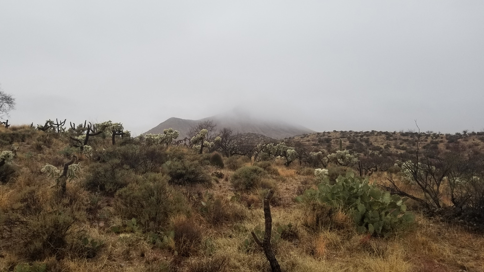 Antelope Peak in the clouds on our approach to Freeman trailhead