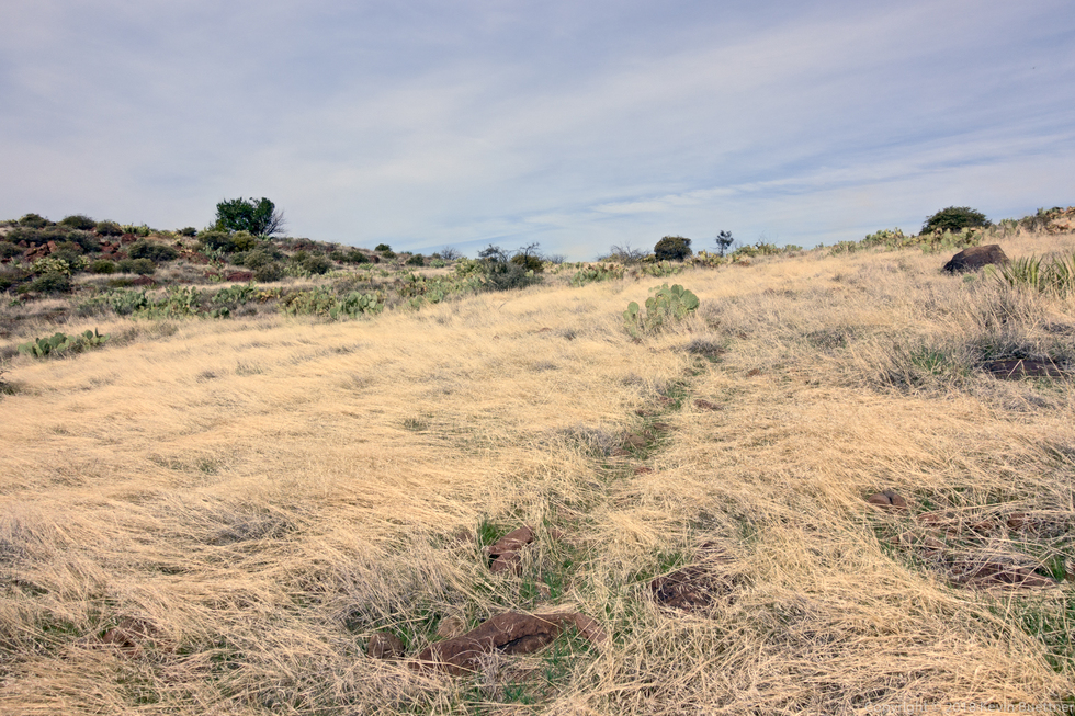 The grass is matted down and there's an obvious path through it. Back when we did the hike in 2014, the grass somewhat before this section was waist high, obscuring the cairns. There was no path through it and we all brought our feet high to press the grass down ahead of us as we walked through it. On our recent hike, this wasn't a problem at all.