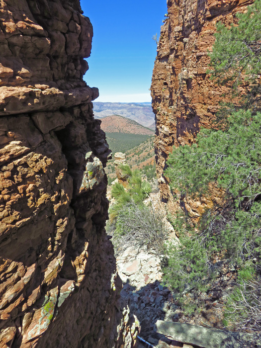Decision time- This pic 11 & pics 12 & 13: We have now arrived at a precarious, minimal space location where the cliff face has a risky opportunity to scramble with all fours 30 feet straight up for a summit attempt. At this location, this pic is what's directly behind us and the next pic #12 is what's to our right and pic #13 is what's directly in front of us (the 30ft straight up cliff face scramble).