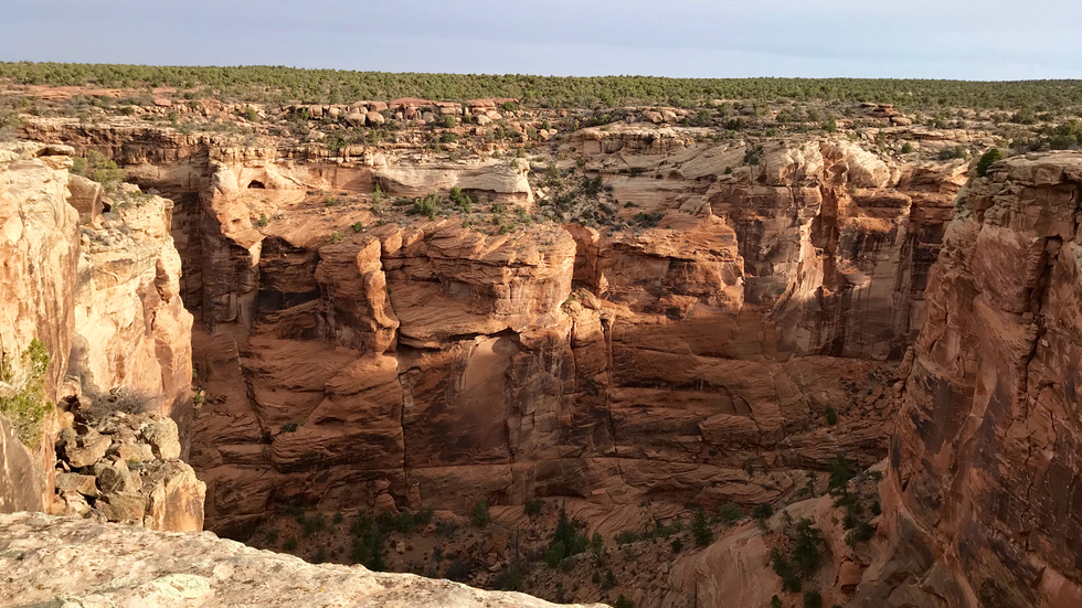 The fork split near the top of the canyon. Alcove with ruins visible across the way.
