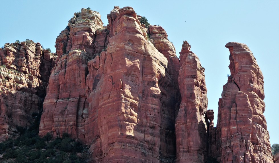Quite the rock formation especially on the right and then the balancing rock in the space between the two slabs.