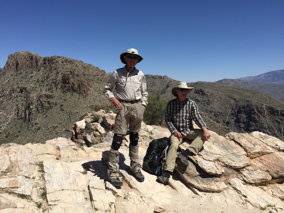 Frank and Kim getting ready to head down Blackett's Ridge, with Point 5001 on the far left.