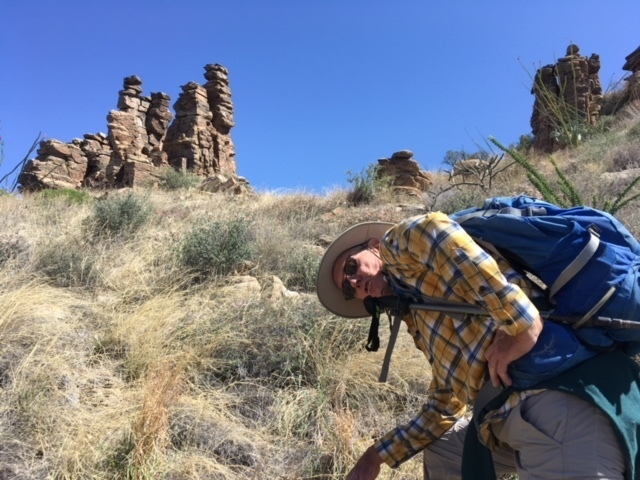 Kim took this on one of the upslopes. "No, I'm not winded, just resting my pack"